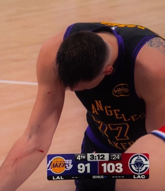谁持的~东契奇罚球时看向手臂 好几谈伤口&血印斑斑体育集锦