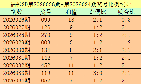 开奖转头:福彩3D第2026034期:奖号为052,奖号质合比为2:1,大小比为1:2体育集锦,跨度为5,类型为组六。