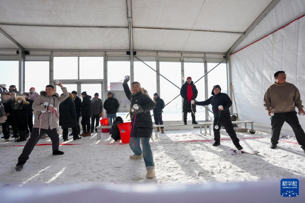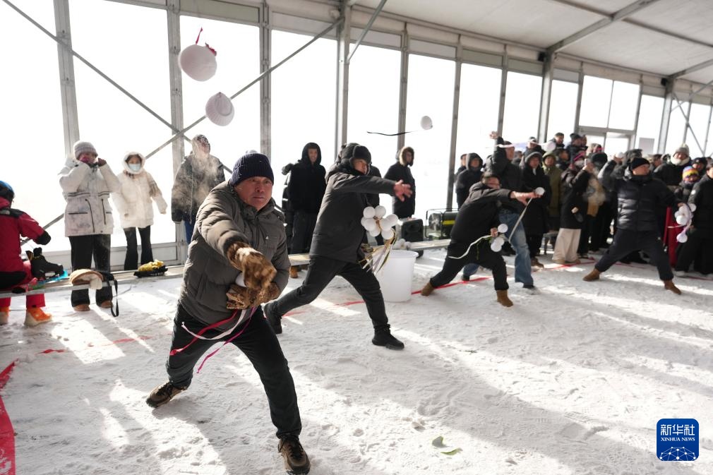 1月20日,参赛选手在比赛中掷“雪球”。新华社记者 王松 摄