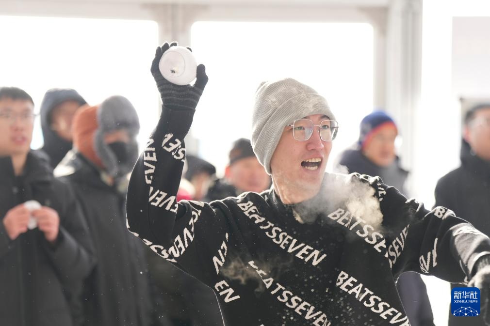 1月20日,别称参赛选手在比赛中掷“雪球”。新华社记者 王松 摄