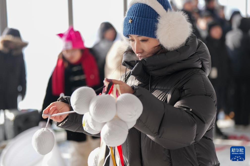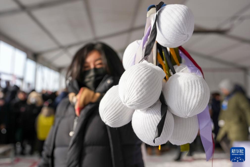 1月20日,参赛选手在比赛前展示“雪球”。新华社记者 王松 摄