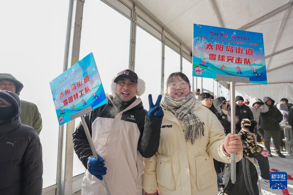 1月20日,不雅众在打雪仗比赛中为参赛选手加油。新华社记者 王松 摄